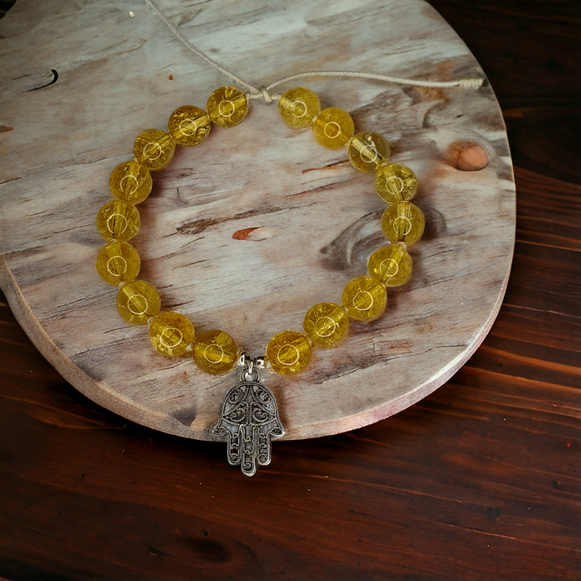 Brazalete elaborado en Cuentas de citrino con dije de mano hamsa en plata 950.